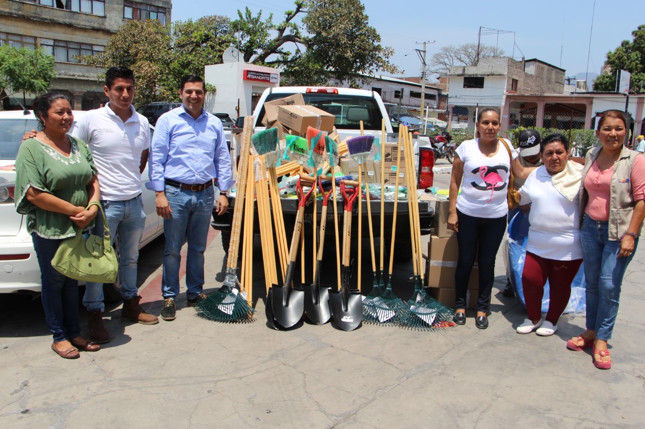 Acompañado del coordinador del programa en la región, Eduardo Ortiz Vega y el regidor, Rogelio Barragán Cabrera, así como el director de Desarrollo Social, Carlos Olvera Santoyo, el alcalde entregó las herramientas de trabajo para 400 beneficiarios del programa, mismos que desarrollan actividades de limpieza de calles y prevención de enfermedades como dengue, chikongunya y zika.