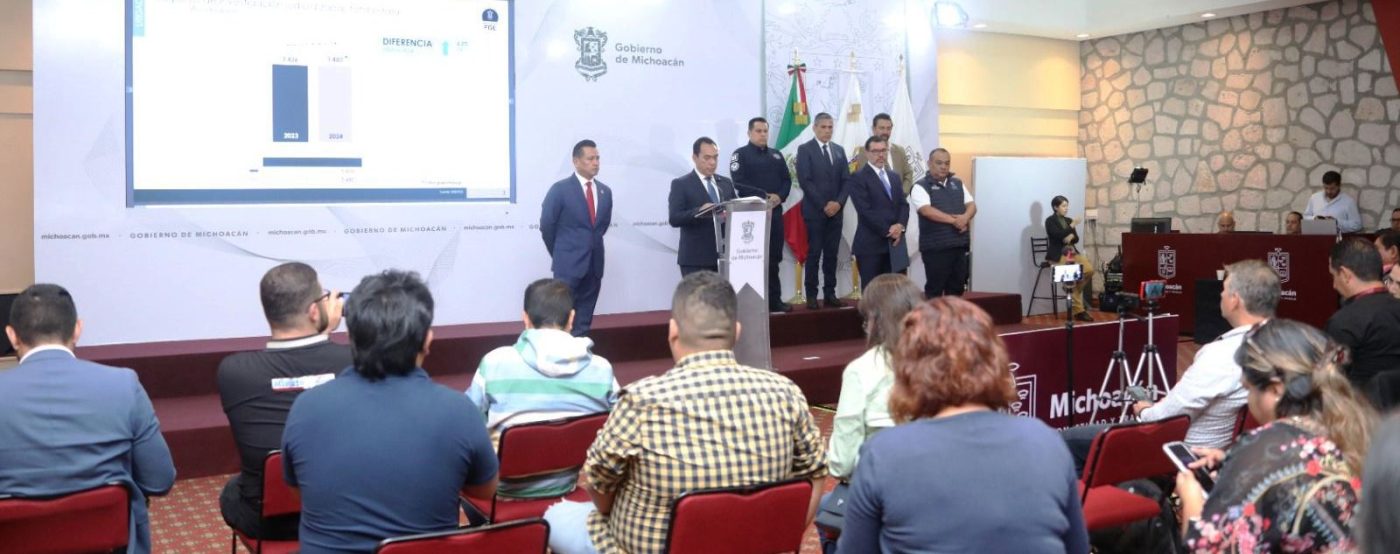 Morelia, Mich., a 3 de Julio de 2024.- El esfuerzo coordinado con las instituciones federales y estatales está dando resultados para combatir de manera eficaz los delitos de alto impacto, aseguró esta mañana el Fiscal General del Estado de Michoacán, Adrián López Solís, quien resaltó que durante en el primer semestre de 2024, a comparación del mismo periodo del 2022, la cifra de víctimas de homicidio doloso disminuyó de 1 mil 507 a 867.