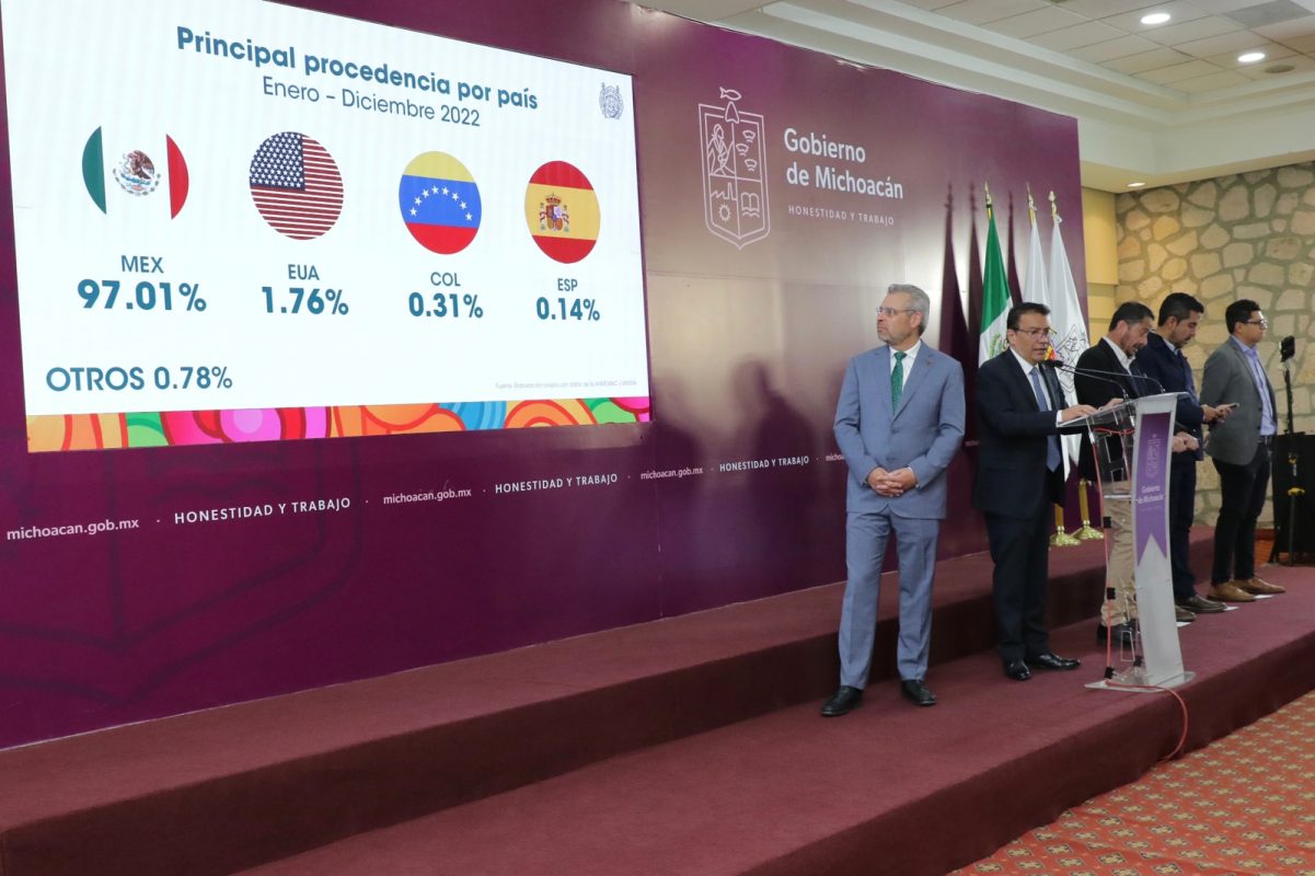 El 97.01 por ciento del turismo que recibió Michoacán durante el 2022 fue de origen nacional; 1.76 por ciento, de Estados Unidos; 0.31 por ciento, de Colombia y 0.14 por ciento de España.