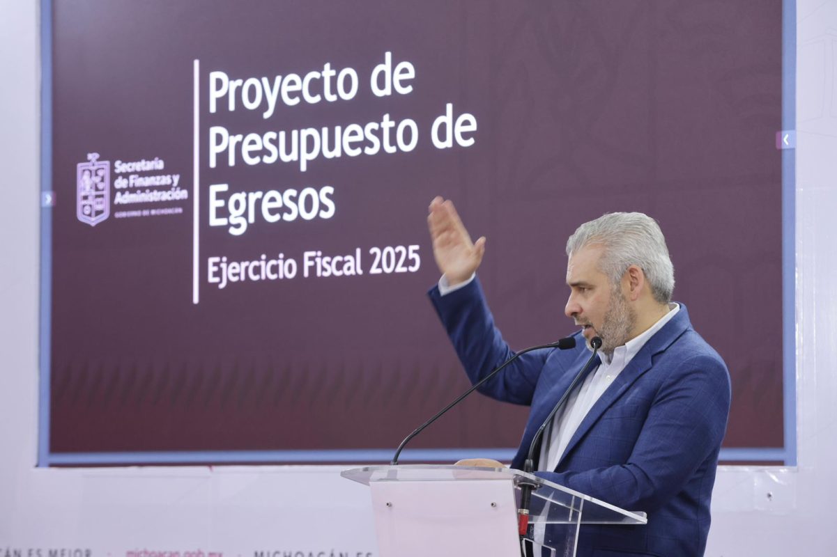 Morelia, Mich., 28 de Noviembre de 2024.- El gobernador Alfredo Ramírez Bedolla destacó que resultado de la confianza de las y los michoacanos hacia el Gobierno del Estado, se ha incrementado la recaudación de ingresos propios, al pasar 4.8 por ciento en 2021 a un 8.6 por ciento proyectado para el 2025.