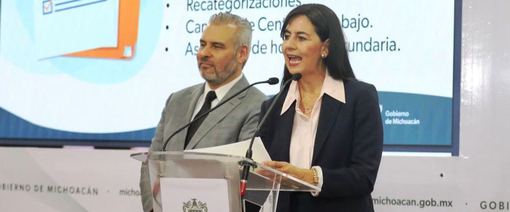 Morelia, Mich, 18 de Abril de 2024.-  Más de 5 mil 500 trámites inician este mes en beneficio de miles de trabajadores de la educación que habían estado esperando certeza laboral, informaron el gobernador Alfredo Ramírez Bedolla y la secretaria de Educación, Gabriela Molina Aguilar.