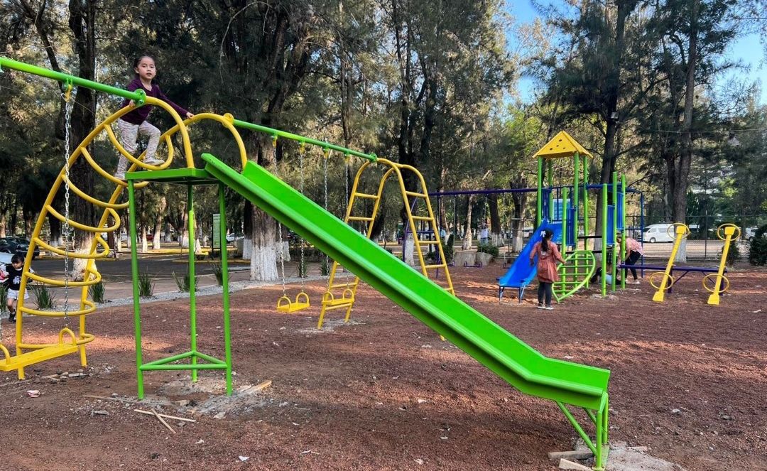 Morelia, Mich., 8 de abril de 2023.- Con el objetivo de que las niñas y niños tengan mayores espacios de recreación, el Centro de Convenciones y Exposiciones de Morelia (Ceconexpo) instaló nuevos juegos infantiles en el jardín del Planetario.