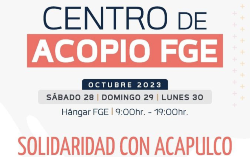 Morelia, Mich., a 27 de Octubre de 2023.-Solidaria con la población del estado de Guerrero, la Fiscalía General del Estado de Michoacán (FGE), instalará, a partir del sábado 28 de octubre y hasta el próximo lunes, un centro de acopio de alimentos no perecederos que serán enviados a los damnificados por el paso del huracán Otis.