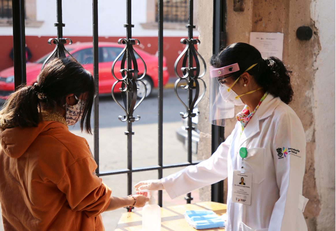 Con esta acción, se hace promoción de la importancia del uso de gel antibacterial y se identifican posibles casos de COVID-19, principalmente en centros de salud y hospitales, y de ese modo se les orienta y canaliza para recibir la atención correspondiente.