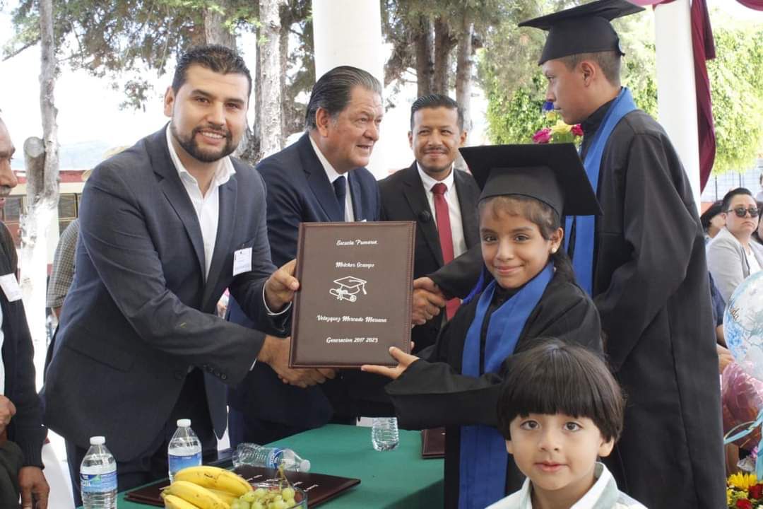 Durante la ceremonia de clausura del ciclo escolar 2023, de la Escuela Primaria Federal «Melchor Ocampo», de la Colonia Fovisste en Zitácuaro, el líder del Sol Azteca resaltó que una sociedad educada empieza a construirse desde la infancia, y es así como se puede aspirar a un mejor país.
