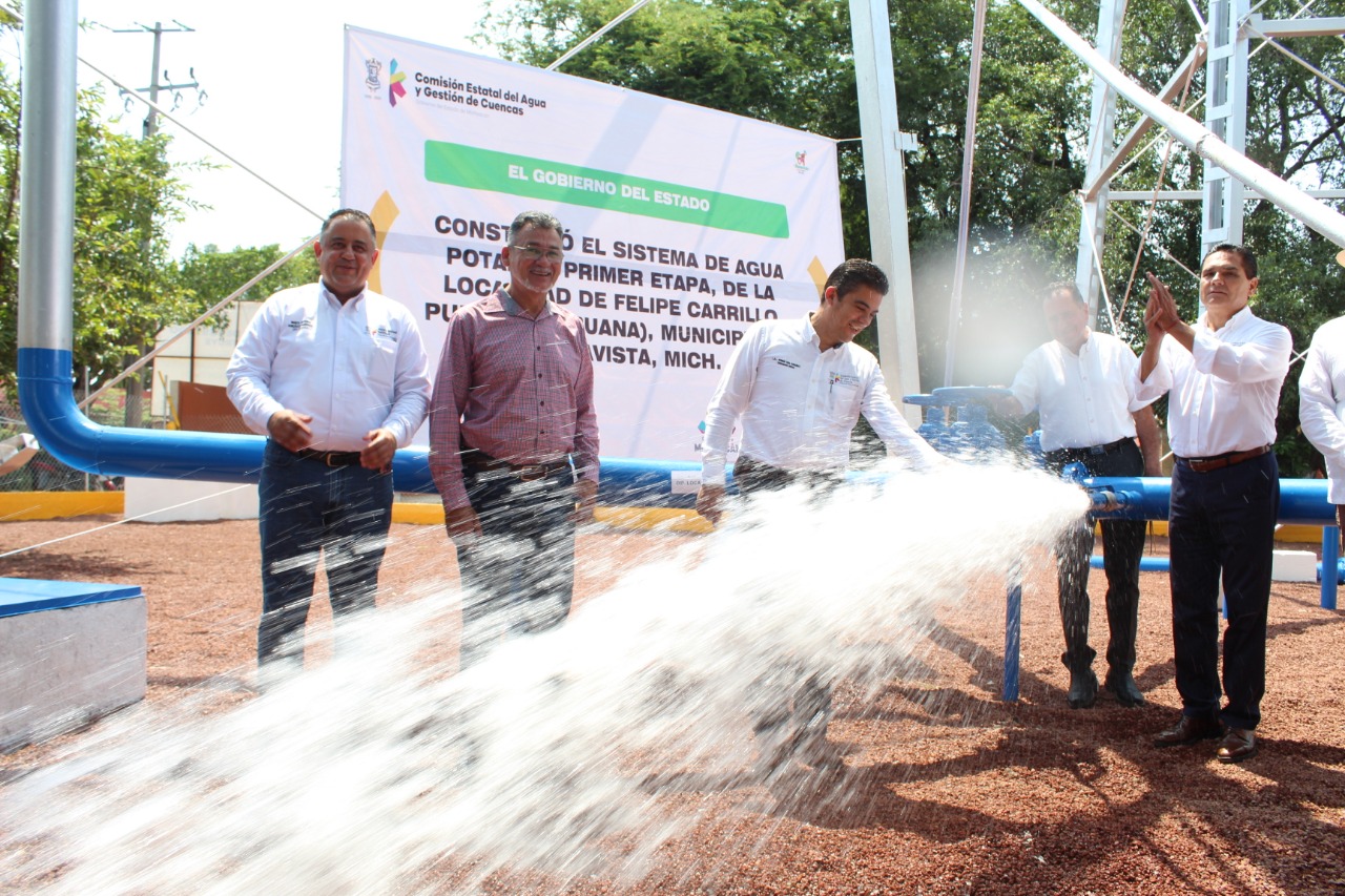 Destaca, en Aguililla, la construcción de un colector sanitario Pie de la Cuesta, con la aplicación de 2 millones 511 mil pesos; mientras que en Buenavista se han desarrollado 15 acciones, entre las que sobresalen el sistema de agua potable, primera etapa, de Felipe Carrillo Puerto (La Ruana), y la línea de conducción de agua potable de Pinzándaro, en las que se han invertido en total, 48 millones 685 mil pesos en este municipio.