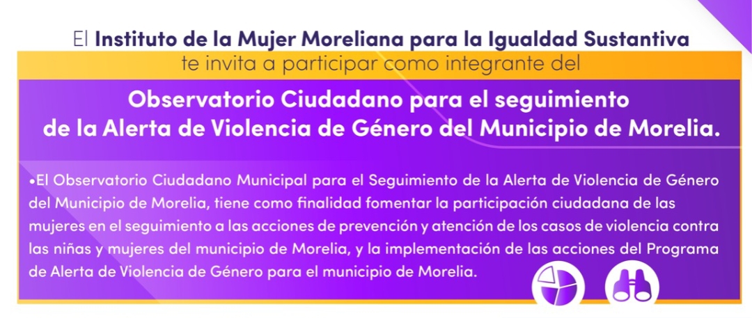 Invita Gobierno de Morelia a participar en Observatorio Ciudadano para el seguimiento de la Alerta de Violencia de Género