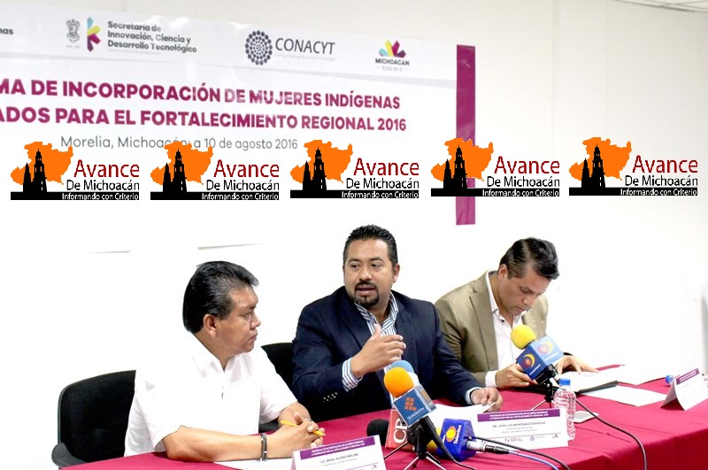 Morelia, Mich., a 10 de Agosto de 2016. José Luis Montañez Espinosa, Secretario de Innovación, Ciencia y Desarrollo Tecnológico y Ángel Alonso Molina, Secretario de Pueblos Indígenas, presentaron a medios de comunicación la convocatoria de becas de posgrado para mujeres indígenas 2016.