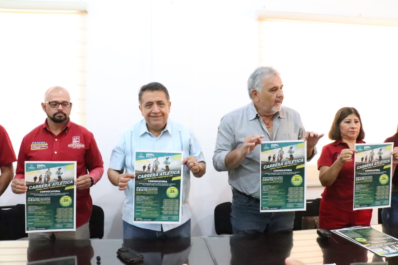 Apatzingán, Mich., a 01 de Marzo del 2023.- Para conmemorar el Día Mundial del Agua, el Comité de Agua Potable y Alcantarillado de Apatzingán, lanzó la convocatoria para la carrera atlética “Camina, trota y corre por el agua” que se realizará el próximo 26 de marzo, con premios de $3,000.00 $2,000.00 y $1,000.00 pesos en diversas categorías anunció el presidente municipal, José Luis Cruz Lucatero y el director del Capama, Homero Gómez Rubí.