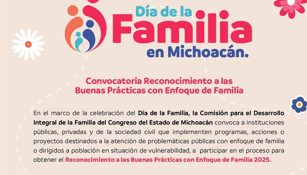 Morelia, Mich, 13 de Febrero de 2025.- Las diputadas Teresita Herrera Maldonado y Belinda Hurtado Marín, que integran la Comisión para el Desarrollo Integral de la Familia en el Congreso del Estado, invitan a participar en la convocatoria “Reconocimiento a las Buenas Prácticas con Enfoque de Familia”.