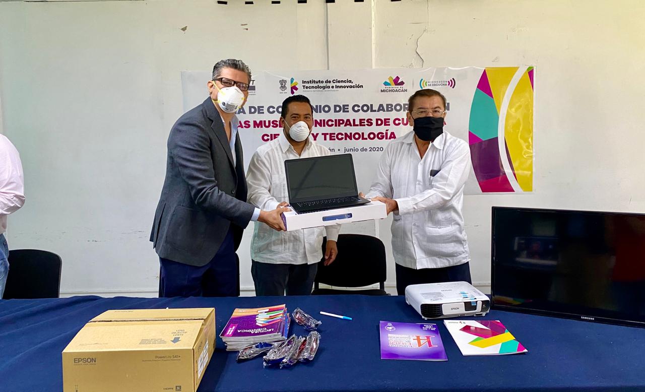 Morelia, Mich., a 16 de Junio del 2020.,- Este martes el Director General del Instituto Tecnológico Superior de Apatzingán, licenciado Ulises Gabriel Rangel Cervantes fue testigo de honor en la firma del convenio entre el Instituto de Ciencia Tecnología e Innovación bajo la acertada dirección del Dr. José Luis Montañez Espinosa y el Presidente Municipal de Tepalcatepec el C.P. Felipe Martínez Pérez, el convenio detalla los aspectos de la colaboración para el equipamiento de “Casas Museo Municipales de Cultura, Ciencia y Tecnología”.
