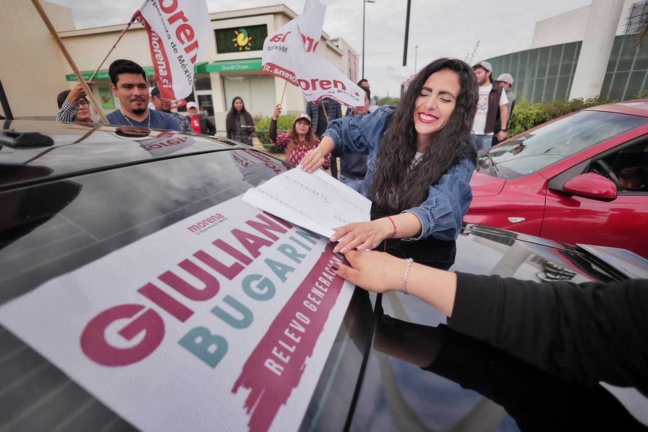 Las y los jóvenes junto a Giulianna Bugarini, se dividieron en grupos y se ubicaron en los 3 cruces diferentes de la zona para motivar a la ciudadanía a respaldar el proyecto de la morenista, al recibir un volante informativo con el proyecto y propuestas de la ex Secretaria del Bienestar en Michoacán.