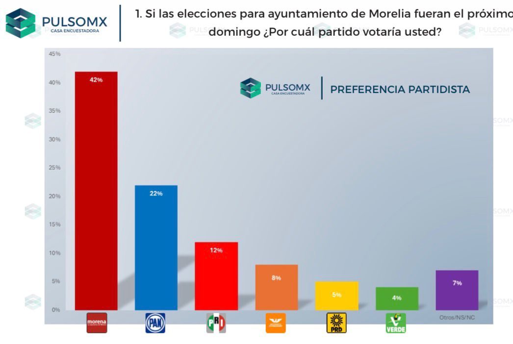 La encuesta de PulsoMx se levantó del 20 al 25 de enero, mediante mil 200 entrevistas, aplicadas a hombres y mujeres mayores de 18 años residentes en el municipio de Morelia.