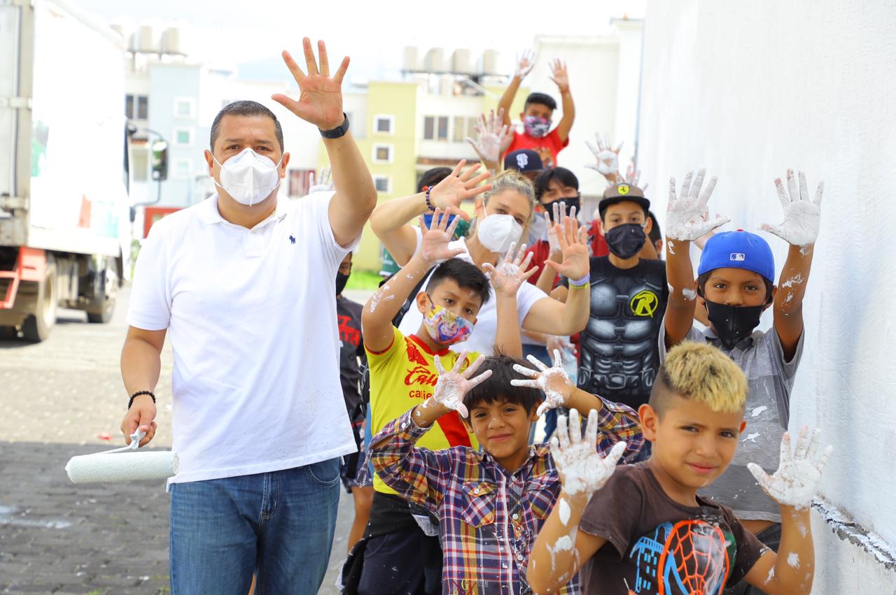 Con pintura, podadoras, escobas y jabón, las y los vecinos se organizaron desde muy temprano para aprovechar que hay poca gente en la calle, y empezaron a retirar basura, lavar canchas, pintar los kioscos y retirar maleza, cuidando en todo momento se atendieran las medidas de prevención por COVID-19.