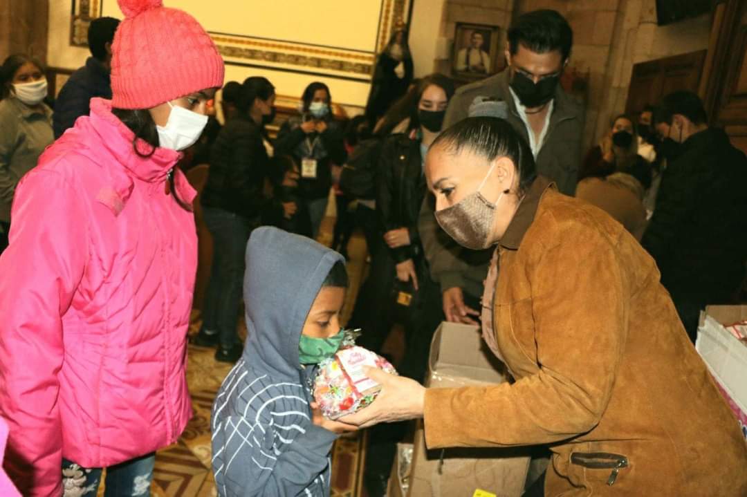 ● Distribuye cobijas, apoyos alimentarios, equipo deportivo y presentes a las y los niños.
