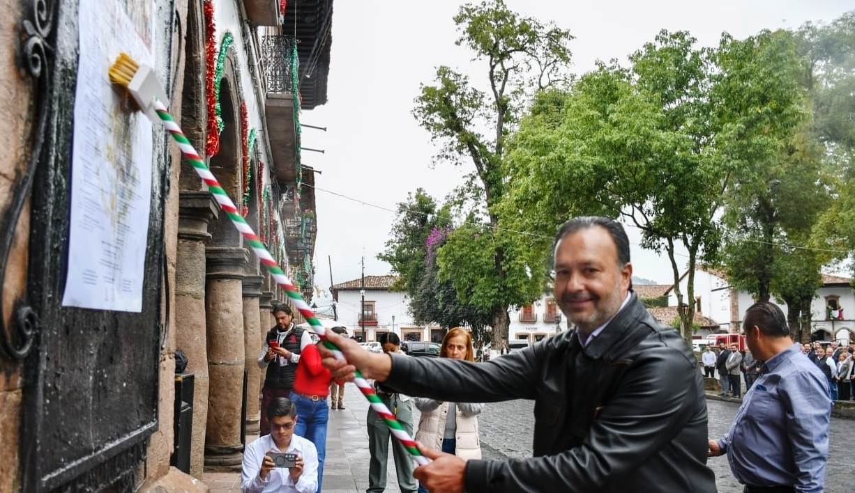 Pátzcuaro, Mich, a 1 de Septiembre del 2025.- Con la tradicional pega de bando, encabezada por el presidente municipal, Julio Arreola, quedaron oficialmente inauguradas las Fiestas Patrias 2025 en Pátzcuaro.