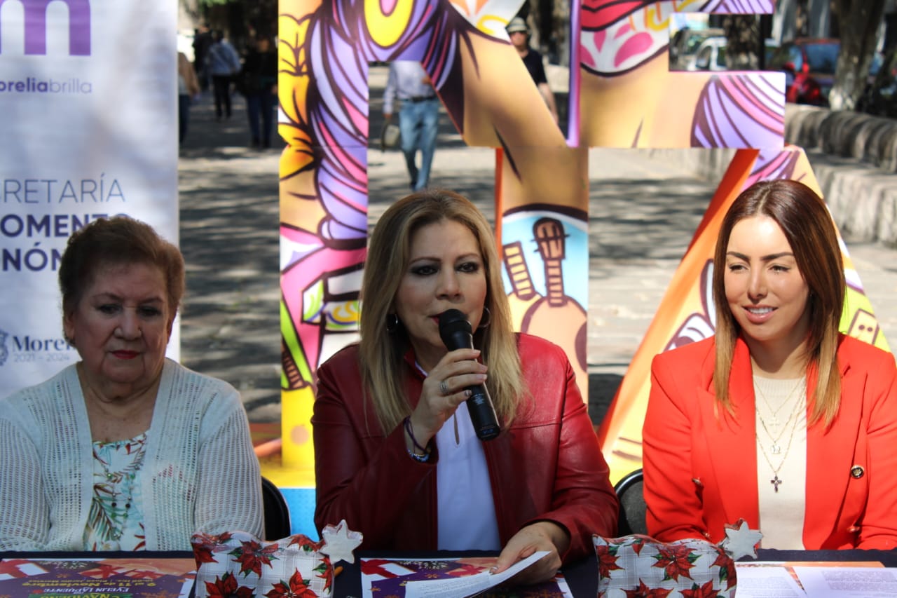 Morelia, Mich., a 04 de Noviembre de 2023.- Bajo la premisa de contar con un evento que muestre y detone la producción que las y los creadores de manualidades plasman con motivo de la época decembrina en diversos artículos decorativos, el Gobierno de Morelia encabezado por el Presidente Municipal Alfonso Martínez Alcázar, a través de la Secretaría de Fomento Económico (SEFECO), impulsará el 1er Festival Navideño arropado por la presencia de la estrella televisiva Evelyn Lapuente.