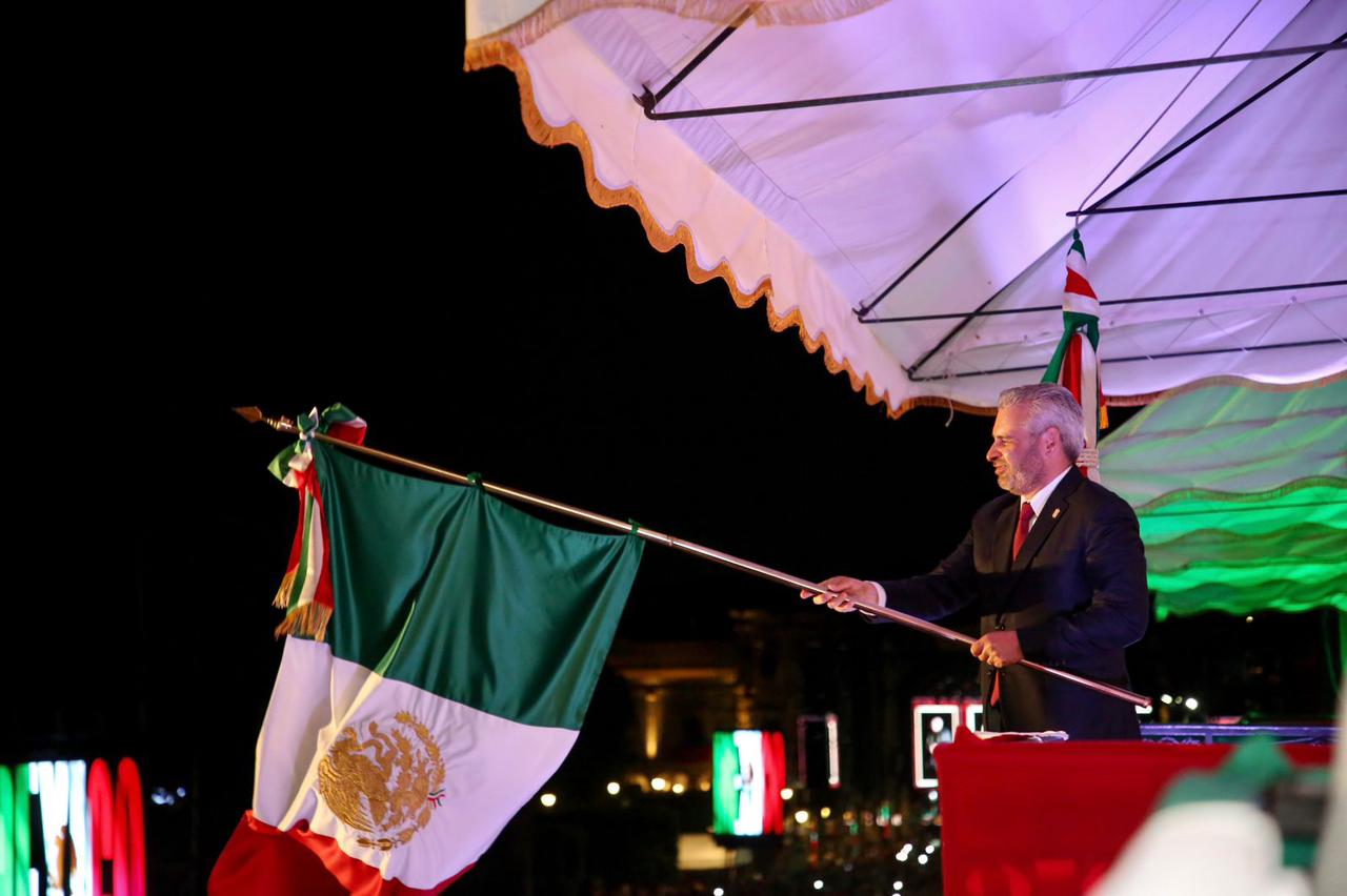 Desde el balcón principal de Palacio de Gobierno, el mandatario estatal recordó a los héroes que dieron libertad como Miguel Hidalgo y Costilla, José María Morelos y Pavón, Vicente Guerrero, Josefa Ortíz de Domínguez, Ignacio Allende y Gertrudis Bocanegra.