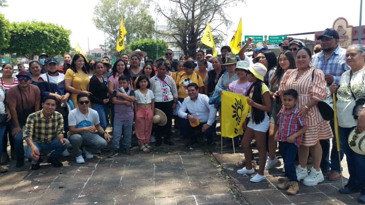 Morelia, Mich., a 08 de Mayo del 2022.- Arropado por cientos de militantes del Partido de la Revolución Democrática el alcalde de San Juan Parangaricutiro arribó al acto conmemorativo del 33 aniversario de la Fundación de dicho organismo político, siendo uno de los alcaldes con fuerte presencia partidista.