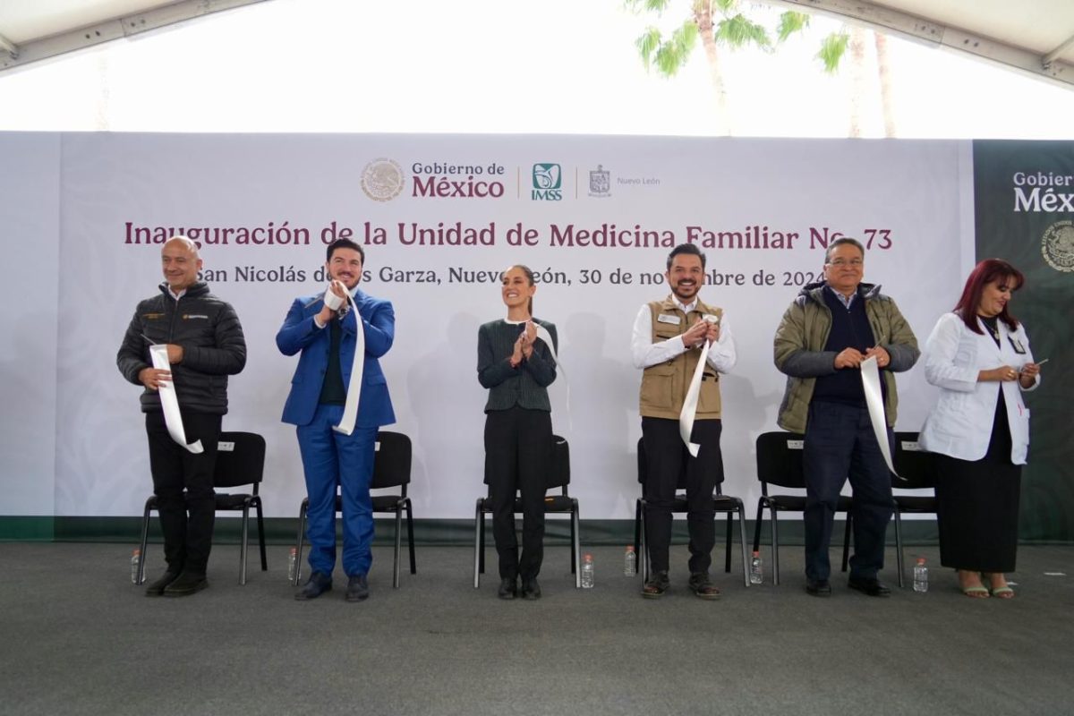 El director general del IMSS, Zoé Robledo Aburto, informó que la UMF No.73 de San Nicolás de los Garza, Nuevo León, representó una inversión de 169 mdp, en beneficio de 70 mil derechohabientes; cuenta con 10 consultorios de medicina familiar, cinco de enfermería de especialidad; así como consultorio dental, de psicología, nutrición, medicina del trabajo y epidemiología; está equipado con rayos X, laboratorio, mastógrafo, ecosonógrafo, electrocardiograma y área de ultrasonido; y en ella laboran 210 trabajadores de la salud; con lo cual se fortalece el primer nivel de atención.