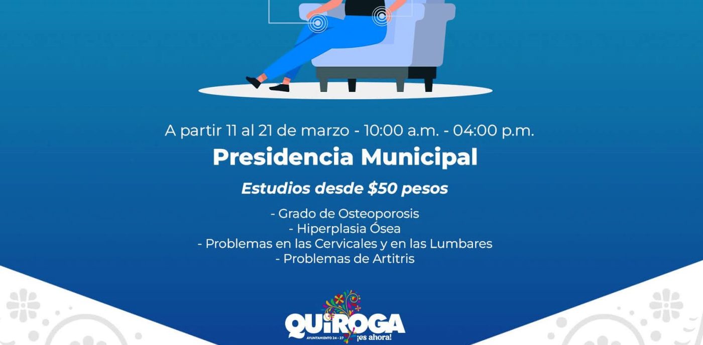 Hasta el 21 de marzo, en un horario de 10:00 a.m. a 4:00 p.m., se estarán realizando estudios y tratamientos a partir de $50 pesos en la entrada de la Presidencia Municipal, con el fin de atender y mejorar la calidad de vida de los habitantes.