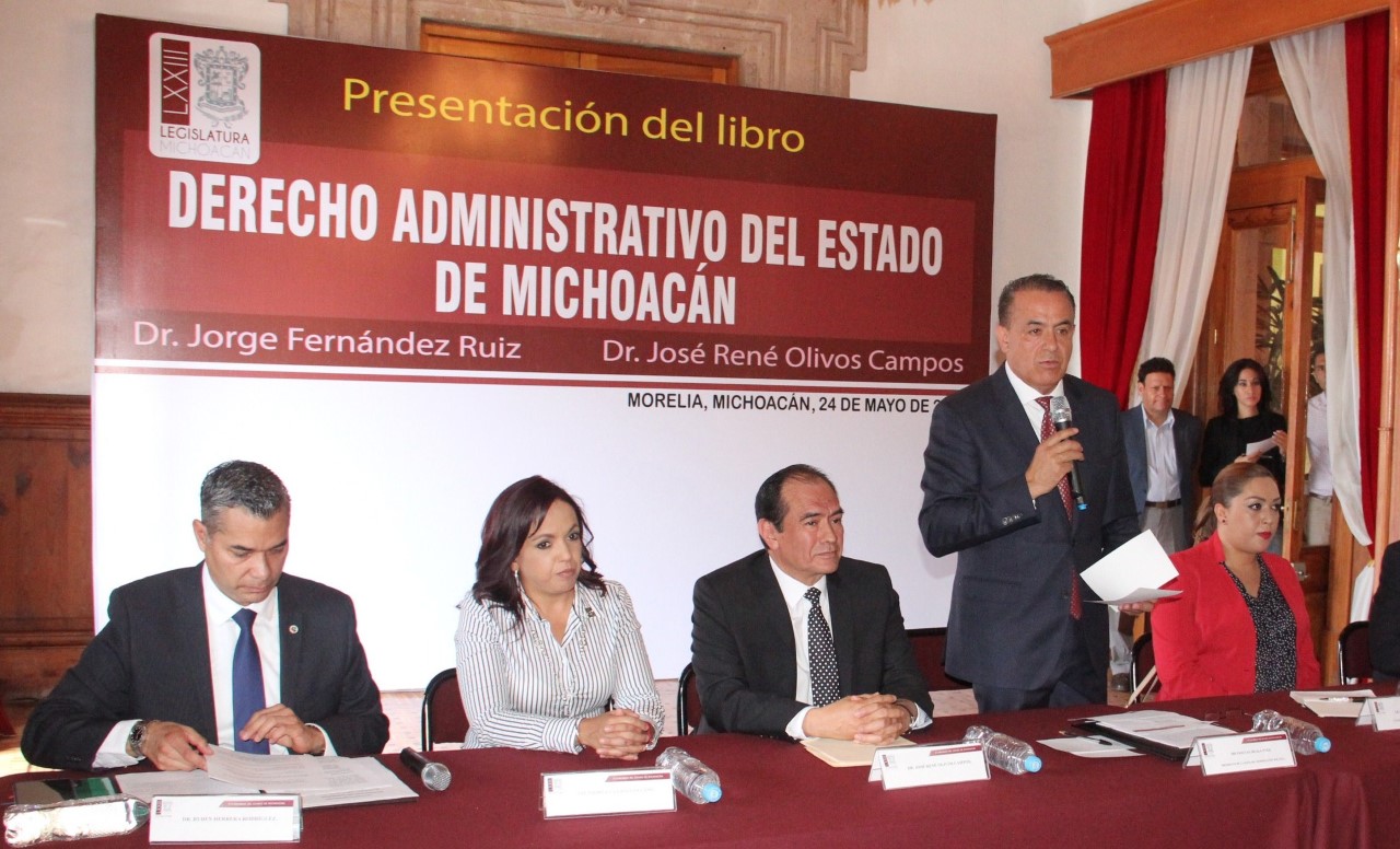 Por su parte, René Olivos Magistrado del Tribunal Electoral del Estado de Michoacán y coautor de la obra agradeció la oportunidad de presentar el libro que junto con Jorge Fernández Ruíz construyeron con el propósito de fomentar y ampliar el estudio en materia de derecho administrativo, por lo que dijo esperar que las instituciones pública y privadas, puedan incorporar el libro en la bibliografía básica del plan de estudios.