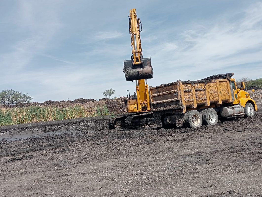 Tras la visita de supervisión que realizaron la subsecretaria Marx Aguirre Ochoa y el director de Infraestructura Básica Agropecuaria, Filemón Ramírez Barragán, constataron el avance de los trabajos de limpieza, en los que se ocupan una excavadora de oruga y tres camiones de volteo de 14 metros.
