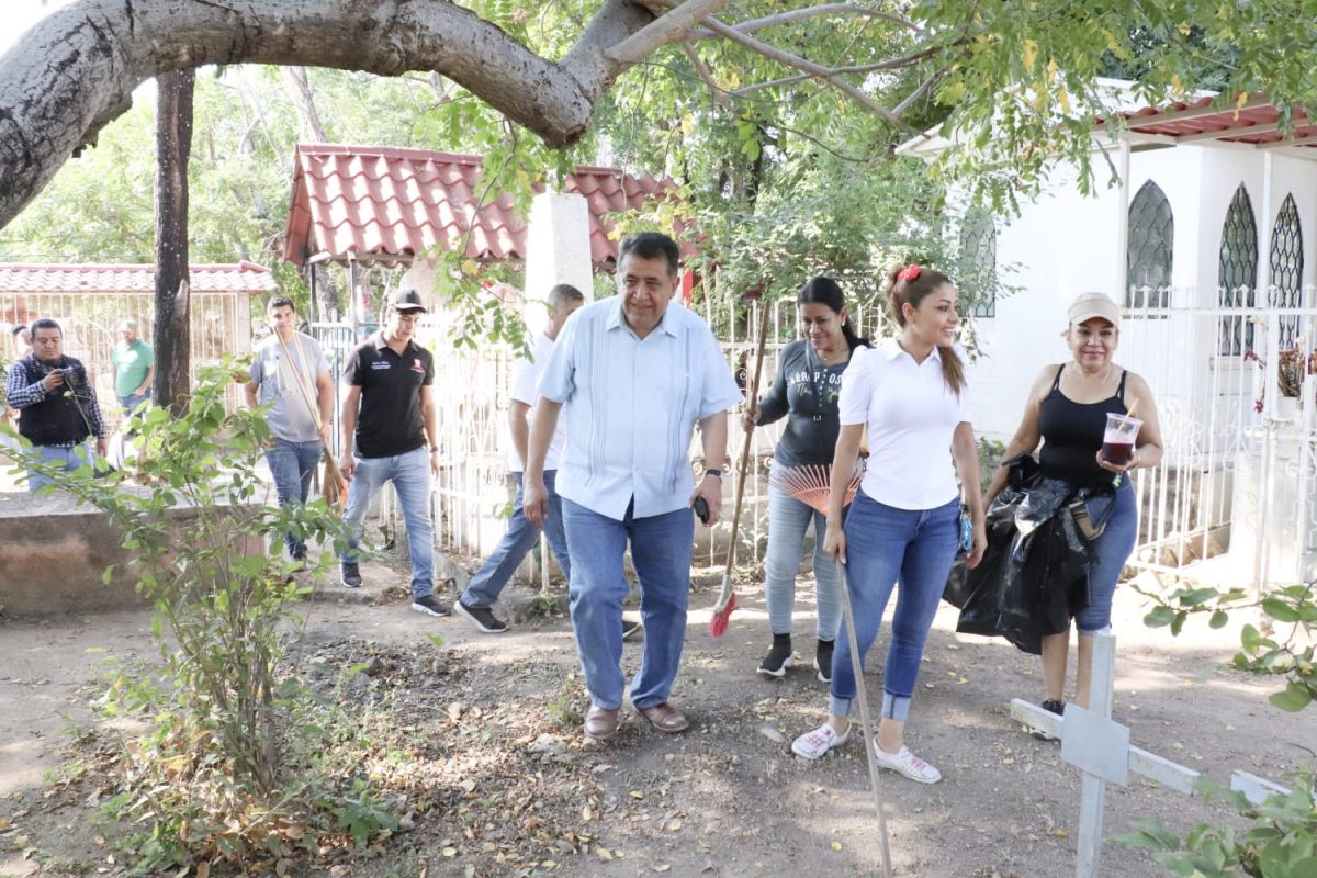 Apatzingán, Mich.- En vísperas del Día de Muertos el presidente municipal, José Luis Cruz Lucatero encabezó una jornada de limpieza con el personal de Ayuntamiento, Servicios Municipales, Parques y Jardines y Capama, con la finalidad de que el campo santo esté limpio y con suficiente agua para recibir a las familias que acuden a visitar a sus difuntos el 1 y 2 de noviembre.