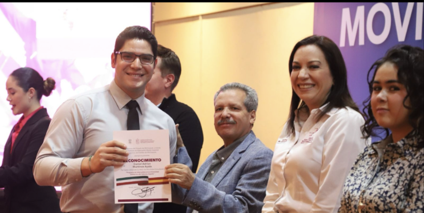 Morelia, Mich., 19 de Diciembre de 2023.- La Secretaría de Educación del Estado (SEE) reconoció la dedicación y esfuerzo de 75 jóvenes que recibieron las primeras becas de movilidad estudiantil, por el Instituto de Educación Media Superior y Superior del Estado de Michoacán (IEMSySEM).