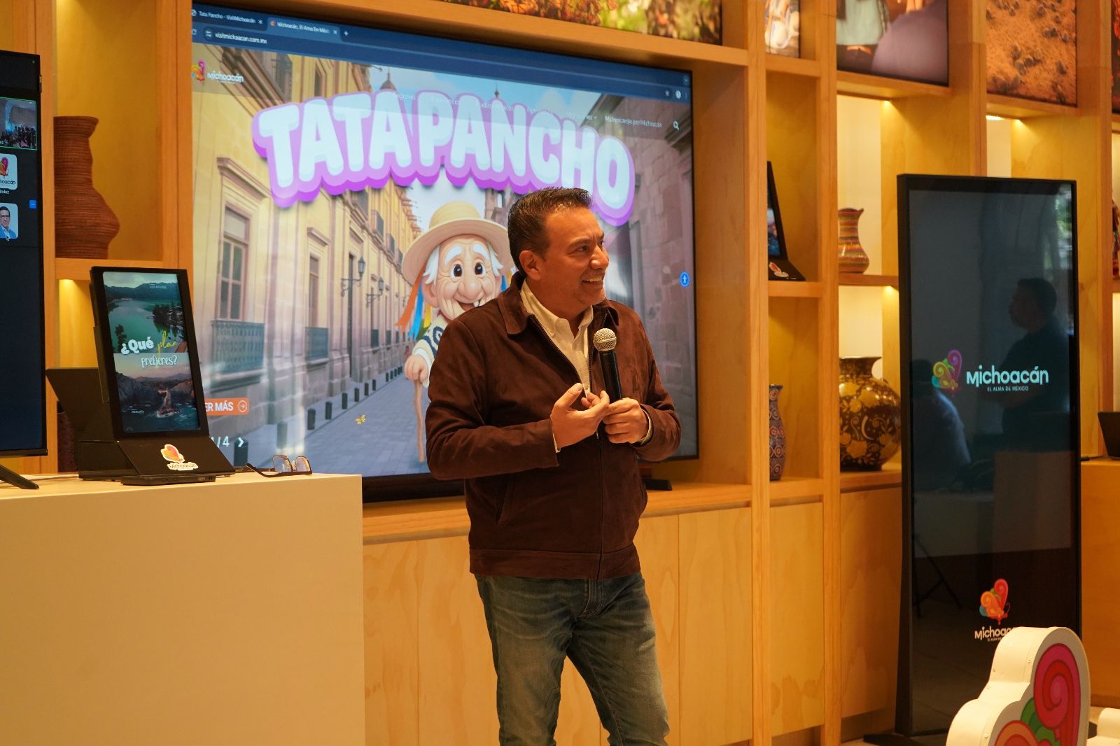 Monroy García estuvo acompañado de manera virtual por la secretaria de Turismo de México, Josefina Rodríguez Zamora, quien destacó esta innovadora herramienta. “Este es el poder de la transformación digital. Tata Pancho dará la vuelta al mundo, se promocionará nacional e internacionalmente Michoacán, este personaje dará a conocer todos los productos turísticos de una manera única”, destacó la funcionaria federal.