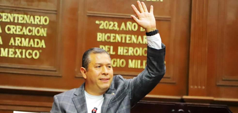 Morelia, Mich, a 6 de Febrero de 2025.- El vicepresidente del Congreso del Estado, Juan Carlos Barragán Vélez llevó hasta la máxima tribuna, la exigencia de miles de ciudadanos, empleados del Sindicato de Trabajadores al Servicio del Poder Ejecutivo (STASPE) y transportistas que exigen regrese el pago con efectivo a las ventanillas de la Secretaría de Administración y Finanzas del Estado.