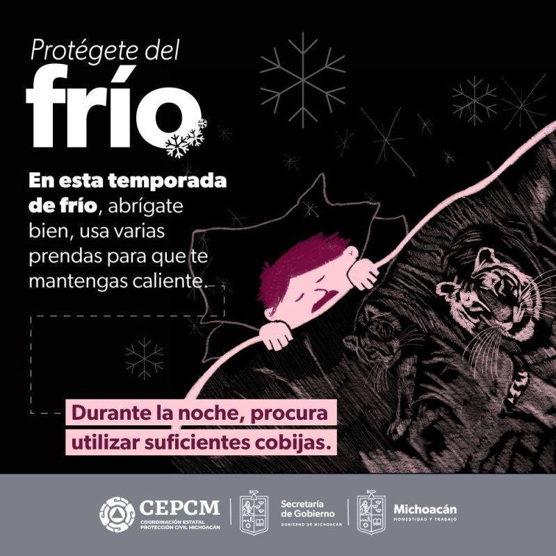 Morelia, Mich., 11 de Diciembre de 2023.- De acuerdo con el pronóstico de la Comisión Nacional del Agua (Conagua), en Michoacán continuarán las lluevas y bajas temperaturas durante las próximas horas, por lo que la Secretaría de Gobierno, a través de la Coordinación Estatal de Protección Civil, exhorta a la población a extremar precauciones.