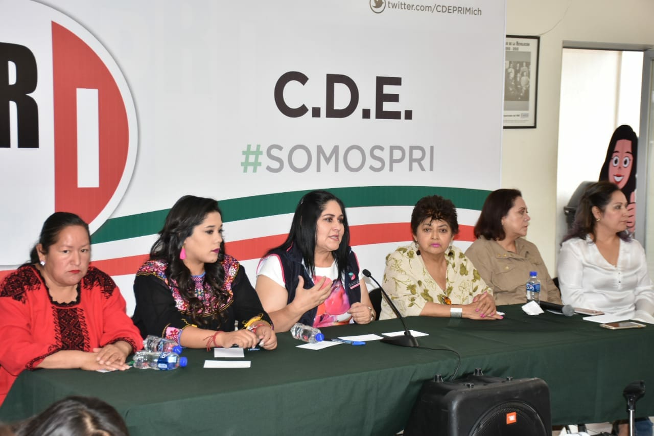 La secretaria estuvo flanqueada por la Rosita Molina Rojas, Secretaria General del CDE del PRI, Rocío Gochi Pineda, presidenta del ONMPRI, así como de Arely Madrid Tovilla, subdelegada del CEN en Morelia.