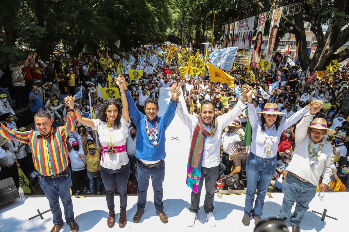 “Viendo a toda la gente reunida con la potencia y fortaleza del PRI, la dignidad y el humanismo del PAN, y el empuje y la defensa de las causas sociales del PRD, con esa claridad le decimos al equipo marrón que no los queremos y les decimos que vamos a ganar las próximas elecciones”, expresó el candidato ante el festivo entusiasmo de las multitudes congregadas.