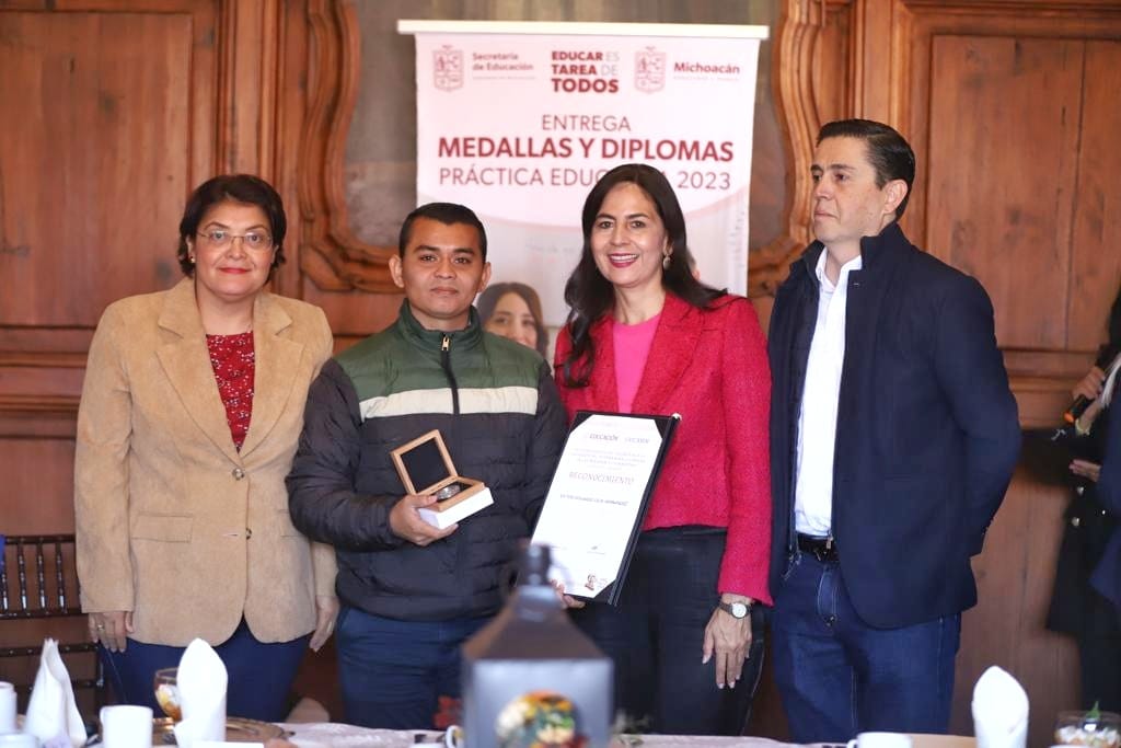 Morelia, Mich., 17 de Noviembre de 2023.- La titular de la Secretaría de Educación del Estado (SEE), Gabriela Molina Aguilar, reconoció a los 15 maestros michoacanos que ganaron el premio nacional a la Práctica Educativa, quienes son un ejemplo de compromiso, creatividad y vocación docente.