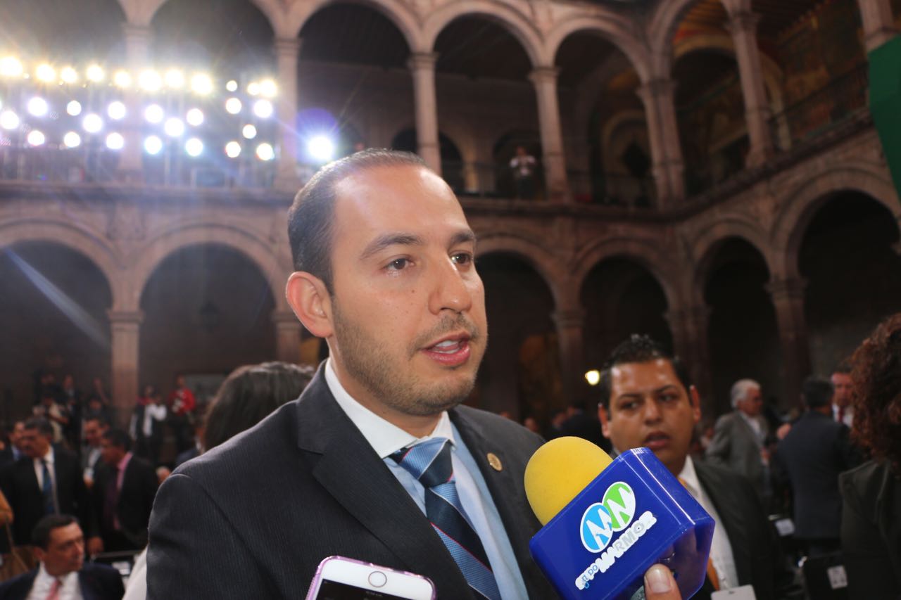 Morelia Mich, 19 de septiembre de 2016.-Ante el difícil entorno que se presenta en el estado de Michoacán en materia de seguridad y de falta de crecimiento económico, es necesario que el Gobierno del Estado redoble sus esfuerzos, tras llegar a su primer año de ejercicio, afirmó el coordinador de los diputados federales de Acción Nacional, Marko Cortés Mendoza.