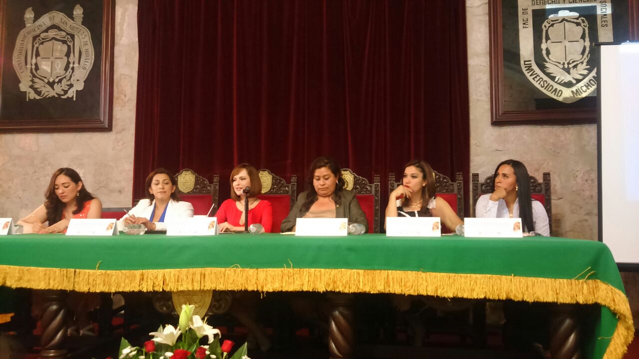 Morelia, Mich., a 20 de abril de 2016.- La Coordinadora de la Fracción Parlamentaria del Partido del Trabajo en el Congreso local, Mary Carmen Bernal Martínez, acudió a la mesa de diálogo “La fuerza de las mujeres para llegar al poder en América Latina” celebrada en la Facultad de Derecho de la Universidad Michoacana de San Nicolás de Hidalgo.