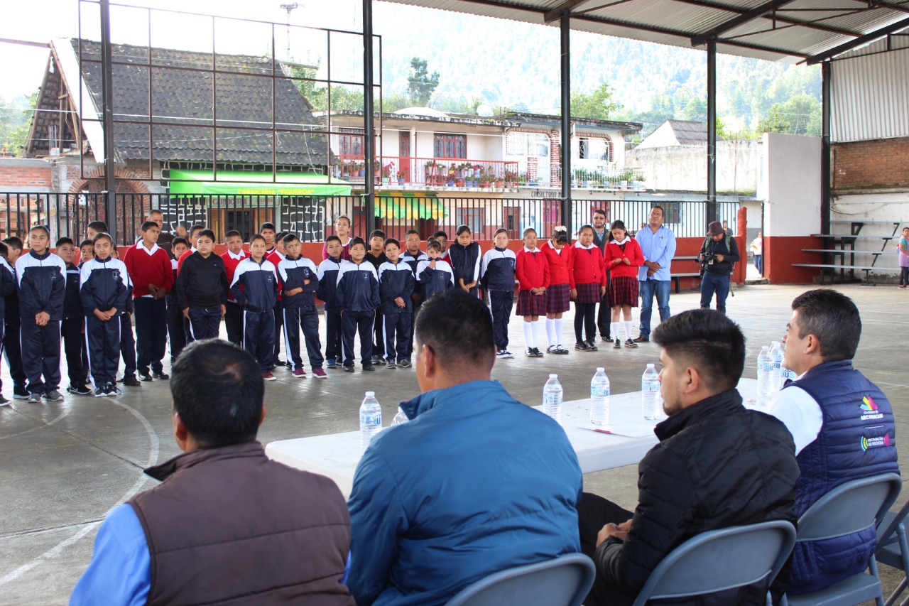 Acompañado por niñas y niños de la Escuela Primaria “Benito Juárez” y por miembros del Consejo de Bienes Comunales de Pomacuarán, el coordinador general de la CEAC, Germán Tena Fernández, condujo el banderazo de arranque de la infraestructura.