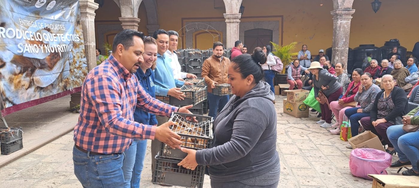 Mediante recorridos realizados del 8 al 16 de febrero, personal de la Dirección de Formación Social Agropecuaria entregó paquetes, equivalentes a 14 mil 420 aves de corral de doble propósito para los municipios de San Juan Nuevo Parangaricutiro, Tancítaro, Cherán, Uruapan, Nahuatzen, Charapan, Taretan, Tacámbaro, Álvaro Obregón, Marcos Castellanos, Villamar y Pajacuarán.