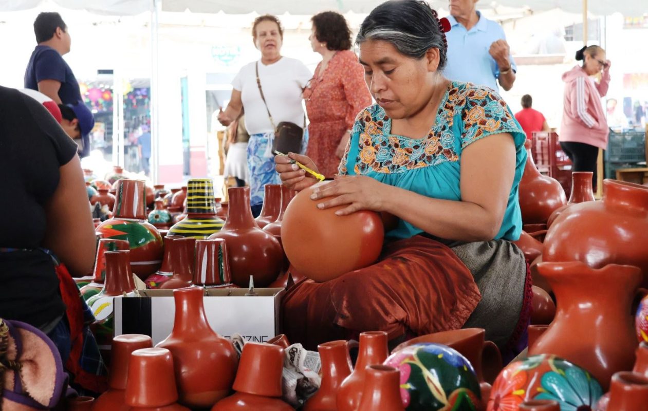 Las personas artesanas ya iniciaron el montaje para exhibir y ofertar sus piezas de 16 ramas artesanales, entre ellas de alfarería, cobre, madera, máscaras, guitarras, instrumentos de cuerda, maque, laca perfilada en oro, pasta de caña, palma de ramos, varios, fibras vegetales, joyería, miniatura, juguetería, arte plumario, cerería, entre otras.