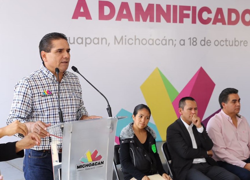 Mensaje del gobernador en la entrega de enseres en Uruapan