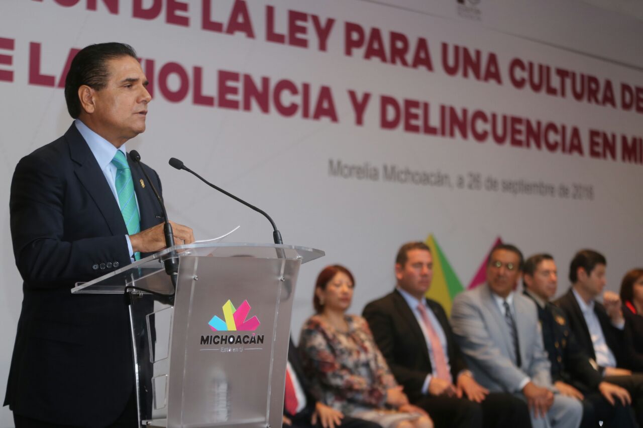 Morelia, Mich., 27 de septiembre de 2016, (Mensaje del gobernador del Estado).- La cultura de la violencia y su remanente, la proliferación de la delincuencia, son fenómenos perniciosos para toda la sociedad. La violencia cancela toda posibilidad de convivencia civilizada, vulnera la dignidad, inhibe la paz y dificulta el entorno de tranquilidad imprescindible para el desarrollo de nuestra sociedad y de todas sus actividades productivas, económicas, sociales, todo se vulnera cuando hay violencia y cuando hay intranquilidad.