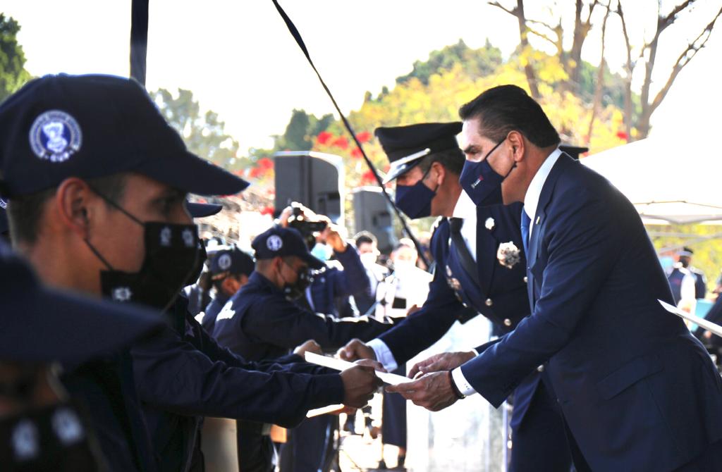 “Hace 5 años parecía inalcanzable la meta de capacitar a mil policías por año para que Michoacán pudiera avanzar en la tarea de proteger a la sociedad de intereses mezquinos”, afirmó Silvano Aureoles.