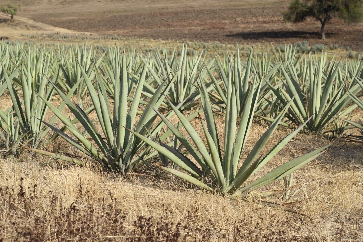 El agave es una planta de hojas radicales largas, triangulares, carnosas, terminadas en un fuerte aguijón, con flores amarillentas en ramillete sobre un bohordo central; es originaria de México y se emplea en la fabricación de fibras textiles y en la elaboración de pulque, mezcal y tequila.