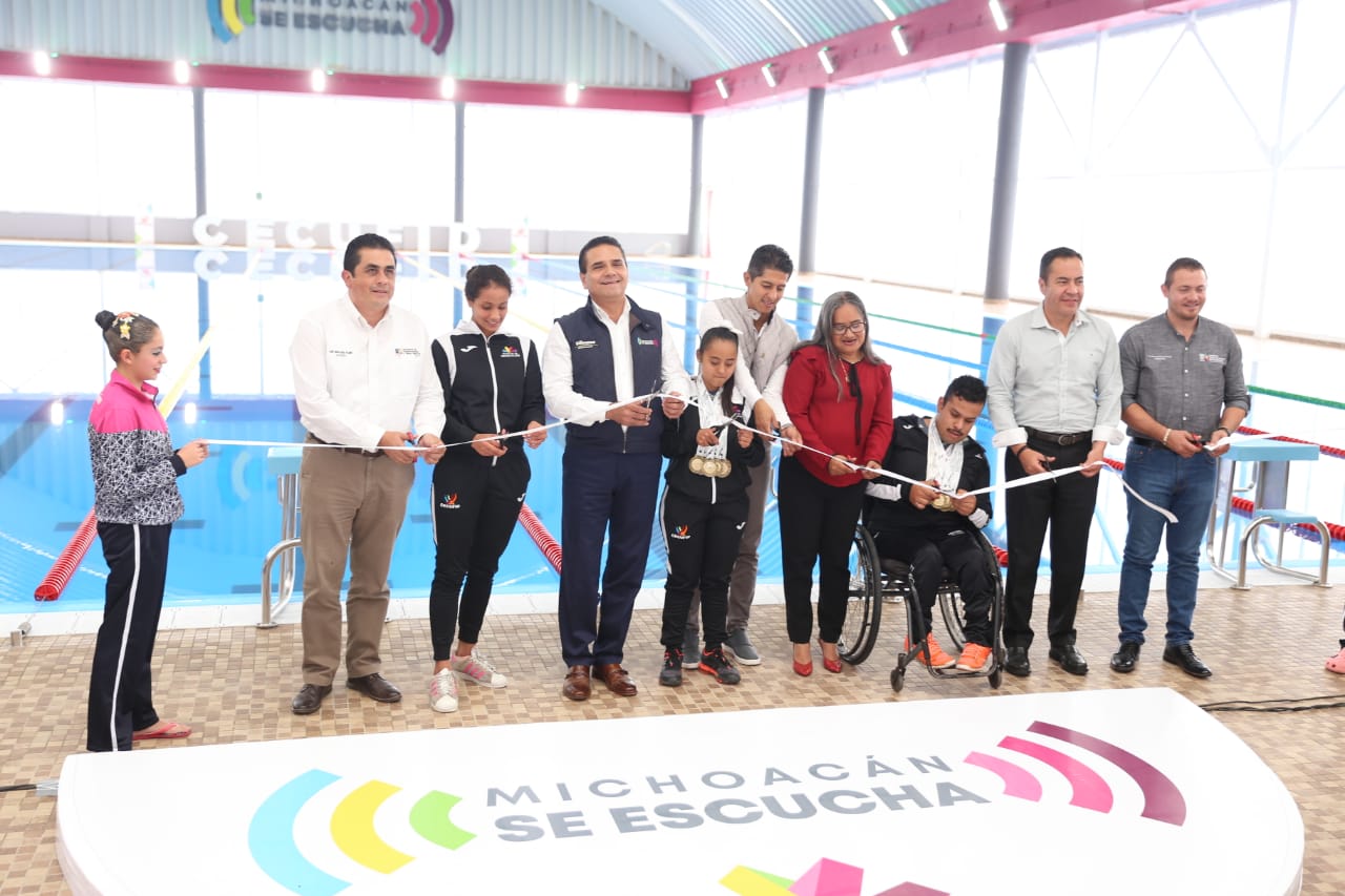 “Es para mi un gusto que esta alberca quede al servicio de las y los nadadores, de los equipos y de los que vienen a hacer rehabilitación, porque tiene una variedad de usos”, comentó el gobernador durante el corte de listón y la demostración que hicieron nadadores michoacanos.