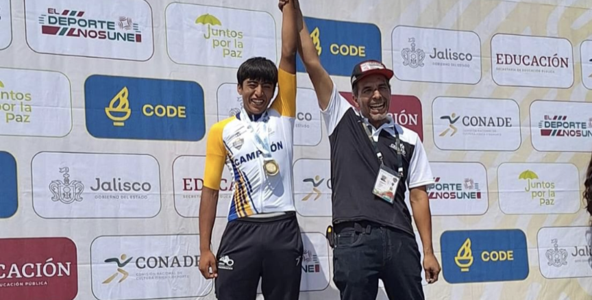 Guadalajara, Jalisco, 6 de junio de 2024.- El ciclista Alexander Marmolejo le dio el décimo metal dorado a Michoacán en los Nacionales Conade 2024, en la prueba circuito 10 kilómetros dentro de la categoría Juvenil B. La entidad también suma nueve platas y 10 bronces para dar un total de 29 medallas hasta el momento.