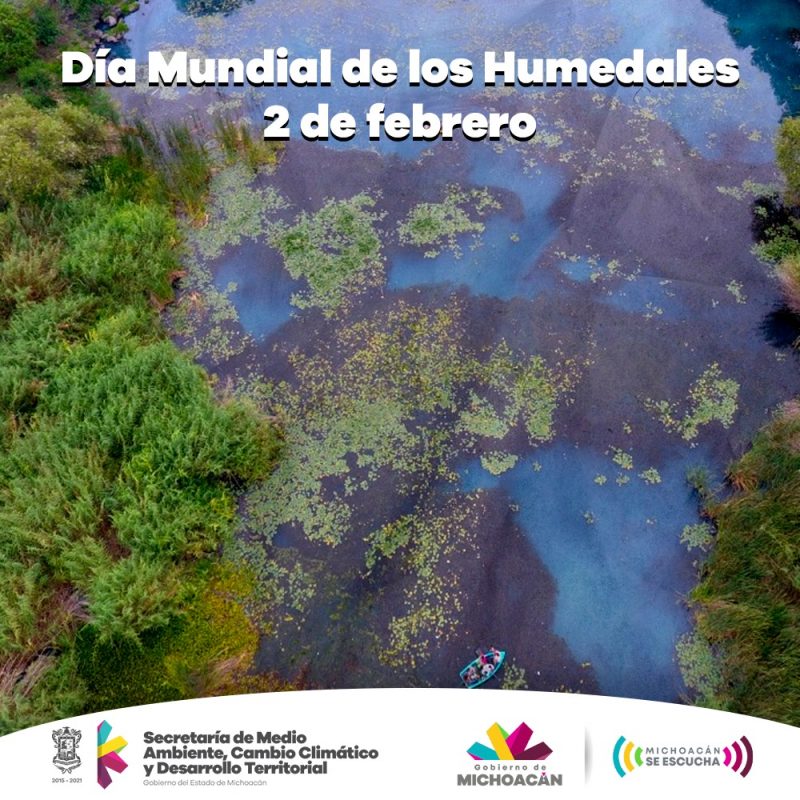 Morelia, Michoacán, a 2 de febrero de 2021.- Un humedal está considerado como un área terrestre que se encuentra saturada o inundada de agua de forma permanente o estacional. Existen humedales de agua dulce y salada; se pueden identificar como marismas, charcas, lagos, ríos, llanuras de inundación y pantanos.