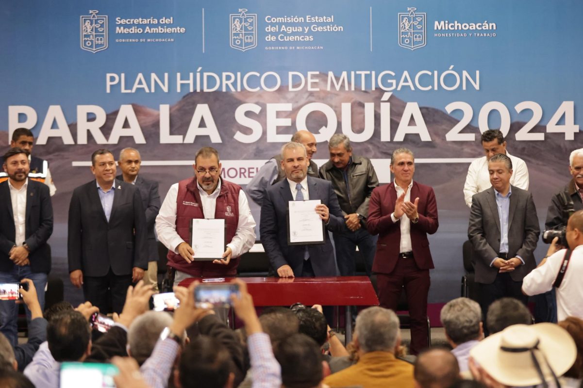 Morelia, Mich., 18 de Octubre de 2023.-El gobernador Alfredo Ramírez Bedolla, firmó el decreto de creación del plan hídrico para la mitigación de la sequía en Michoacán, tras mencionar que el estado enfrenta uno de los periodos más graves de su historia por el cambio climático y la alteración de los ciclos hidrológicos.