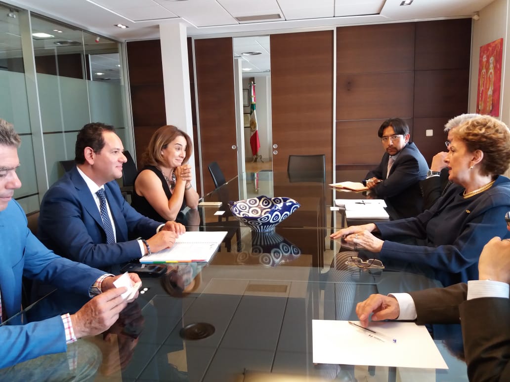 Madrid, España, a 27 de mayo de 2019.- Con la premisa de promocionar y posicionar al Estado de Michoacán en España, la secretaria de Turismo Estatal, Claudia Chávez López y el secretario de Desarrollo Económico, Jesús Melgoza Velázquez, se reunieron con la Embajadora de México en España, Roberta Lajous Vargas.