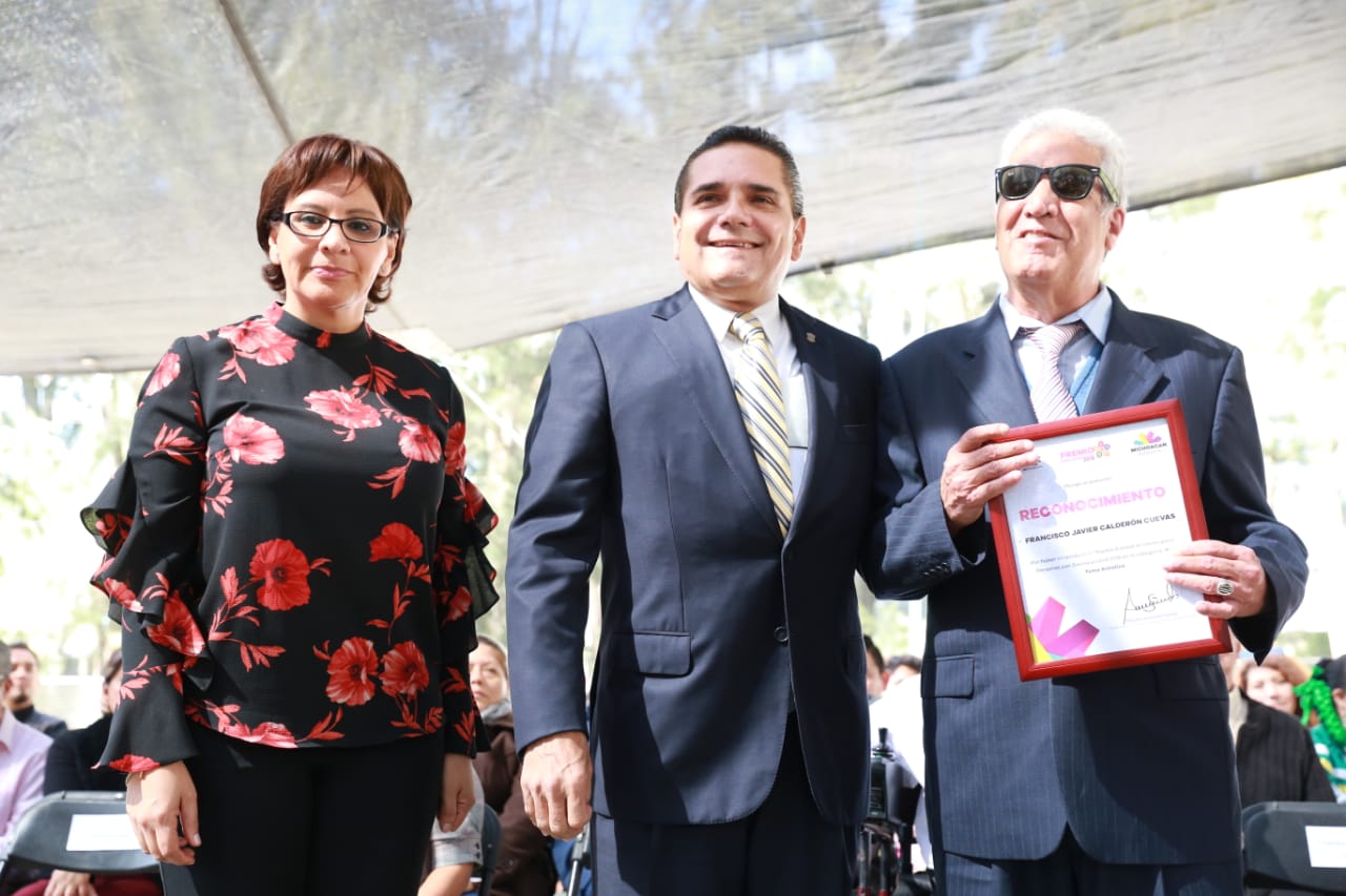 A Francisco Javier Calderón Cuevas, se le reconoció por su trayectoria artística; es originario de Morelia, tiene ceguera total y desde muy pequeño comenzó a tocar la armónica y a los 12 años inició sus estudios de piano. A la fecha cuenta con 40 años de carrera artística, en la que destaca su labor como compositor, arreglista y profesor.